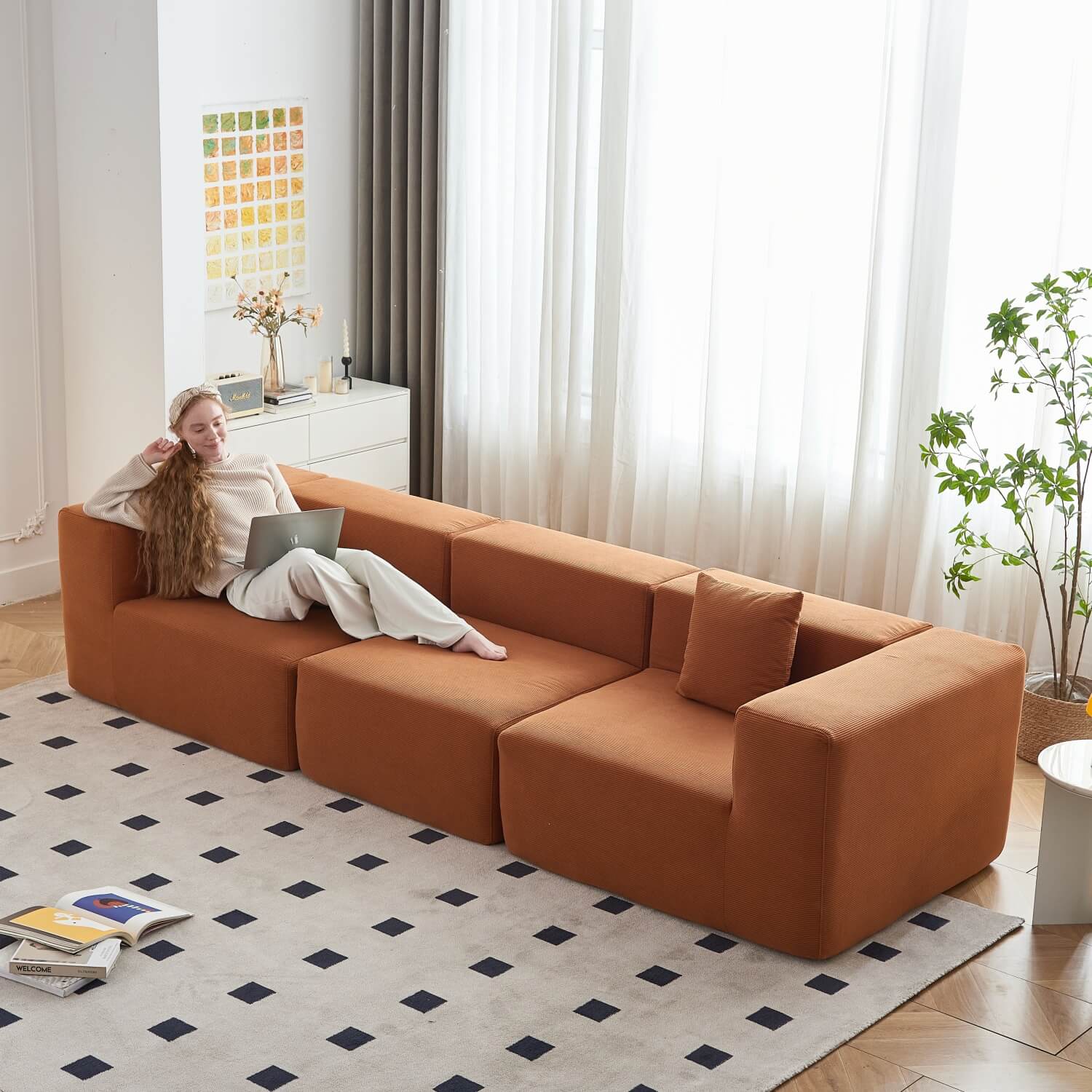 Mid Century Modern Sectional Sofa 3 Seat, Couches Sofas for Living Room Apartment Bedroom